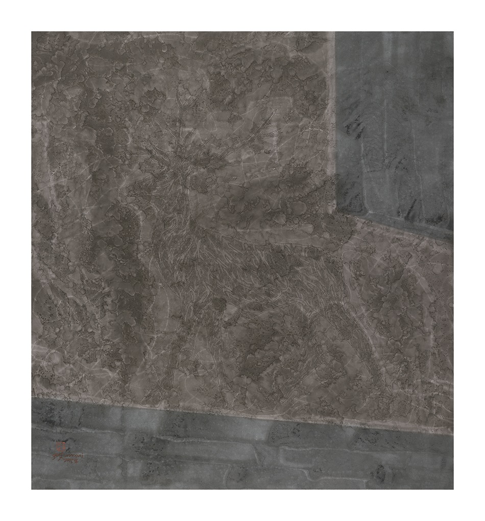 《坛经·鹿1》97X90CM纸本综合材料2015年 |