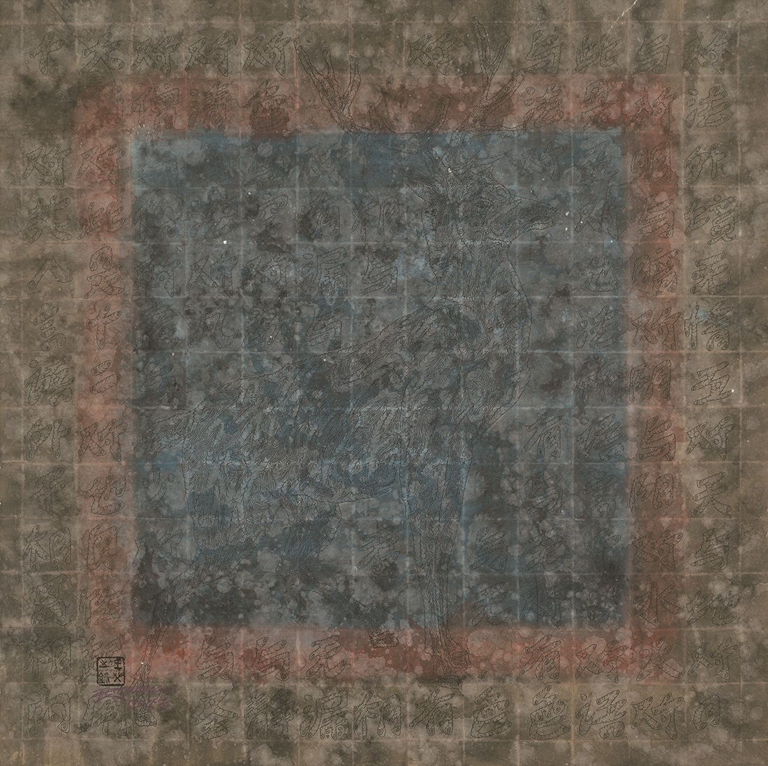 《坛经·鹿2》69X69CM纸本综合材料2015年 |