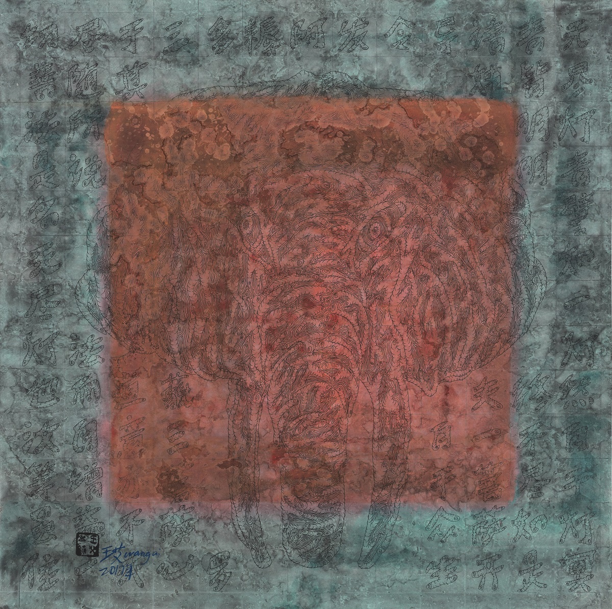 《维摩诘经·大象的肖像1》69X69CM纸本综合材料2017年 |