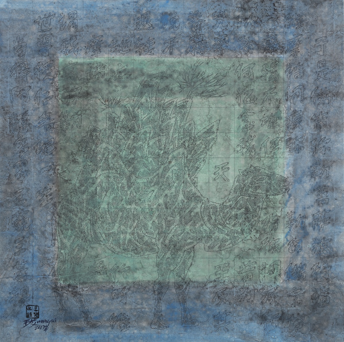 《维摩诘经·骆驼1》69X69CM纸本综合材料2017年 |