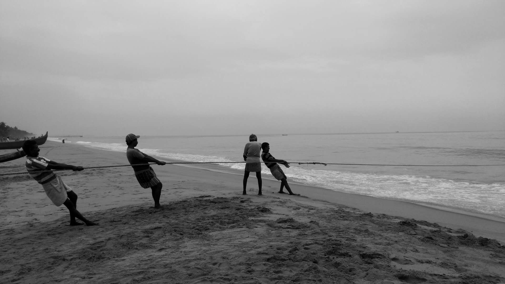 《鱼的梦想》材料:丙烯、画布、黑胶唱片。2017年纽约 100X76 公分严力