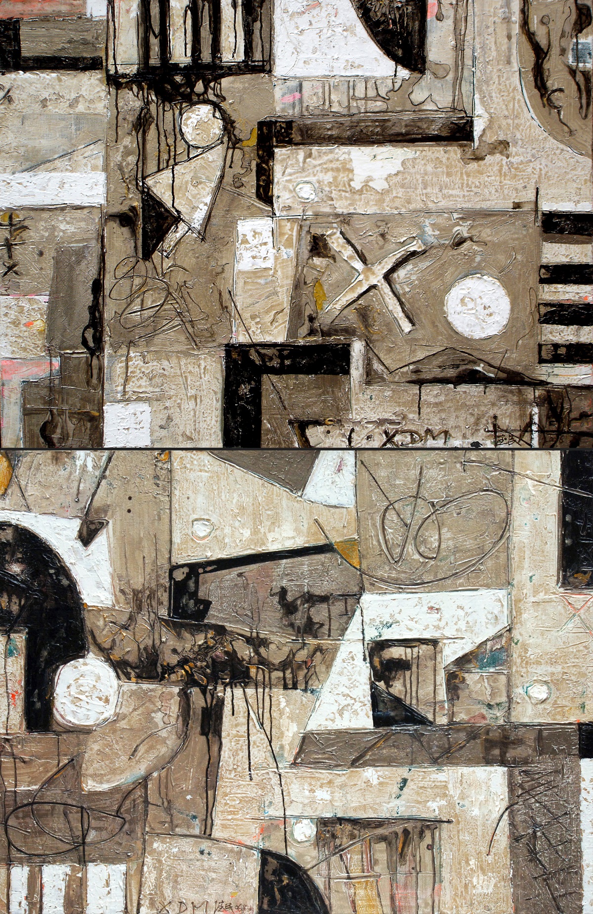 6.《发生和选择·符号演绎》两联幅180×110cm综合材料2006许德民