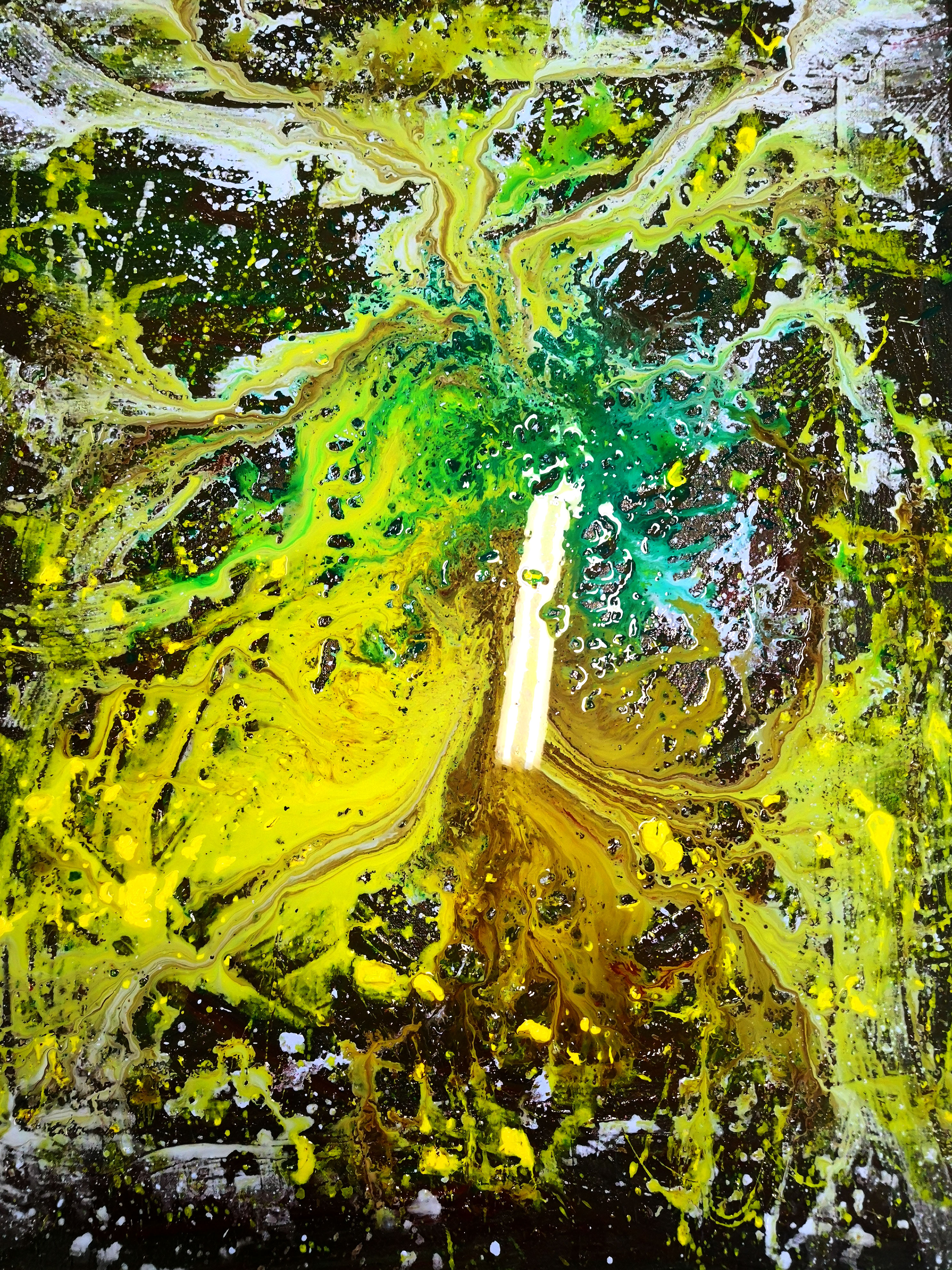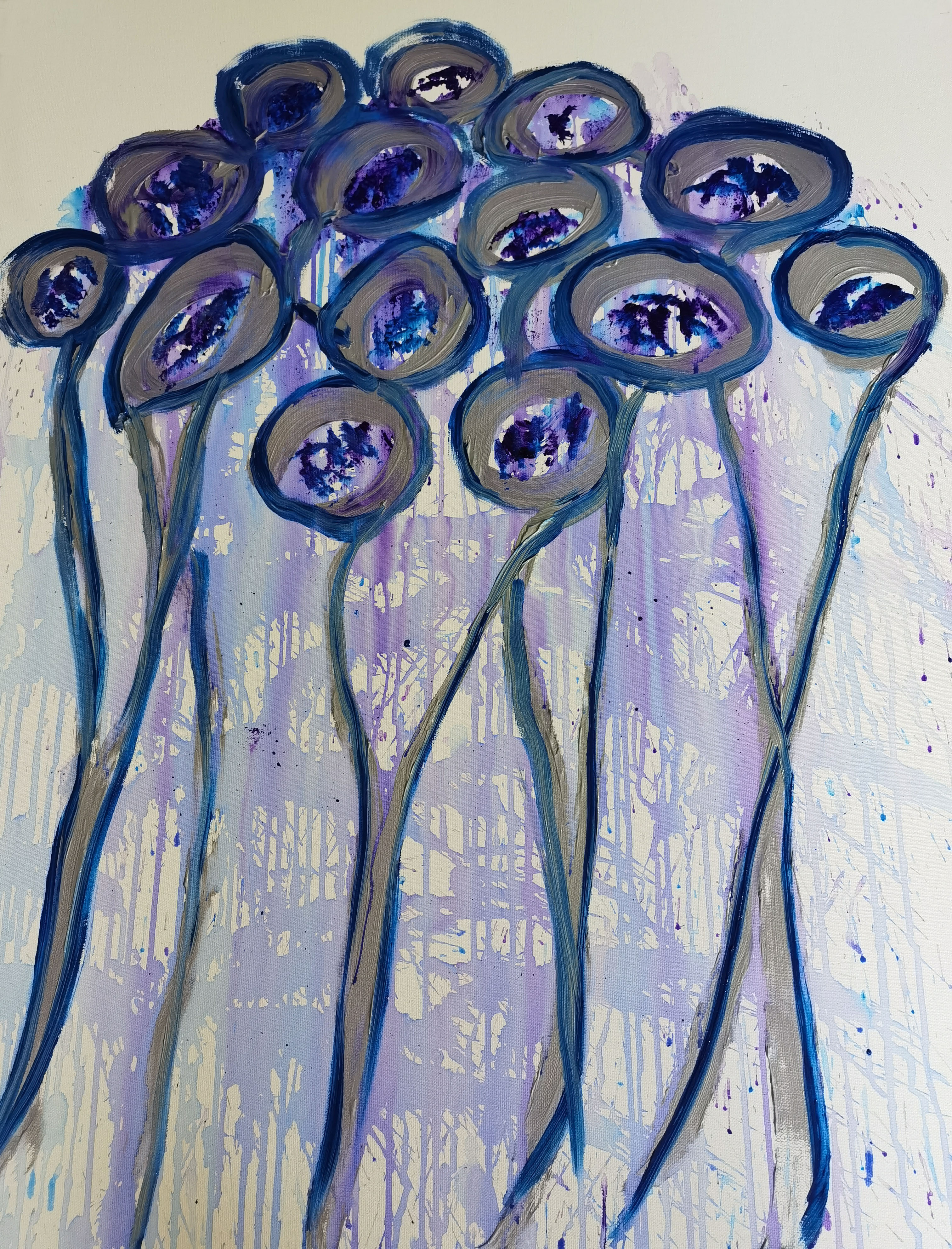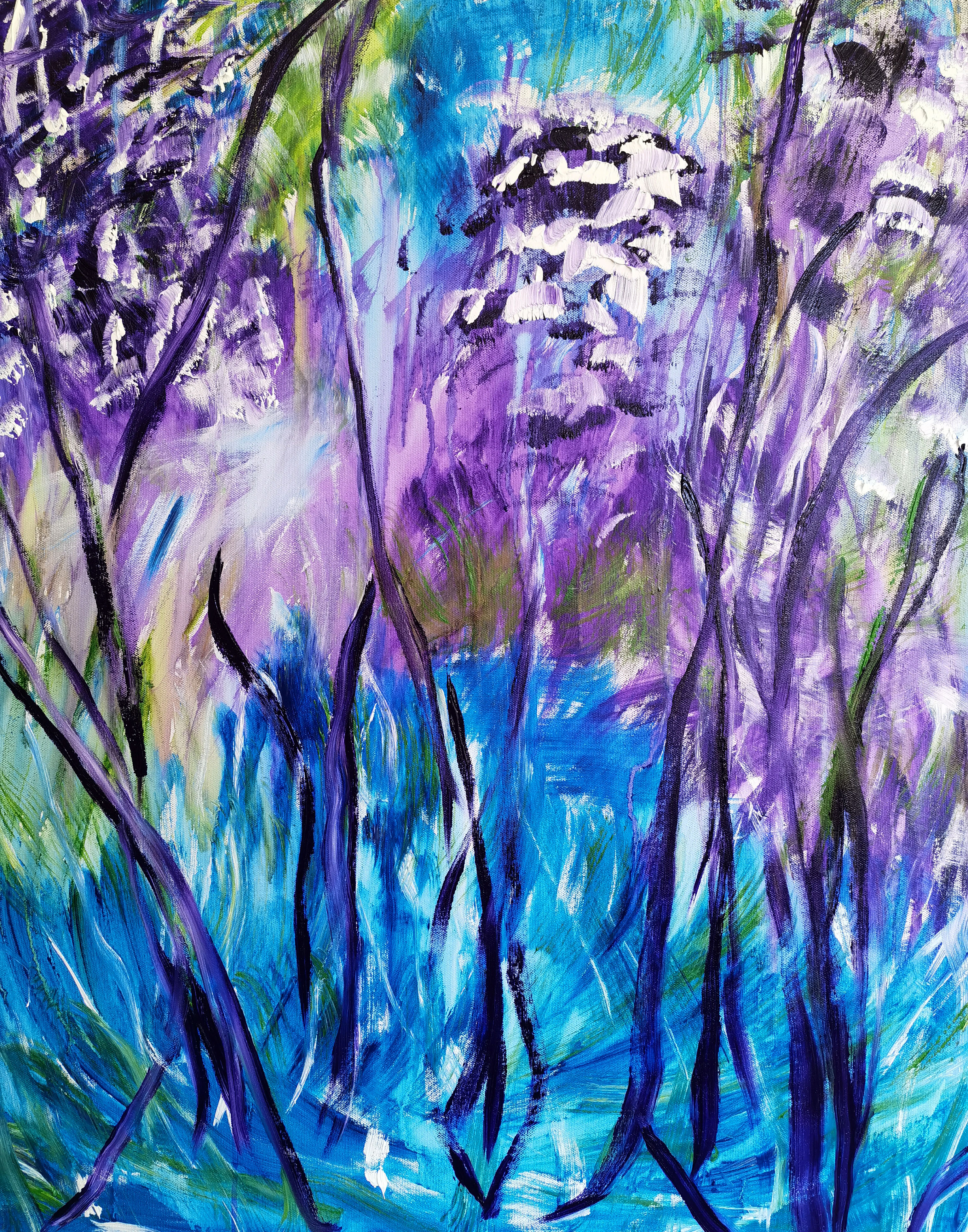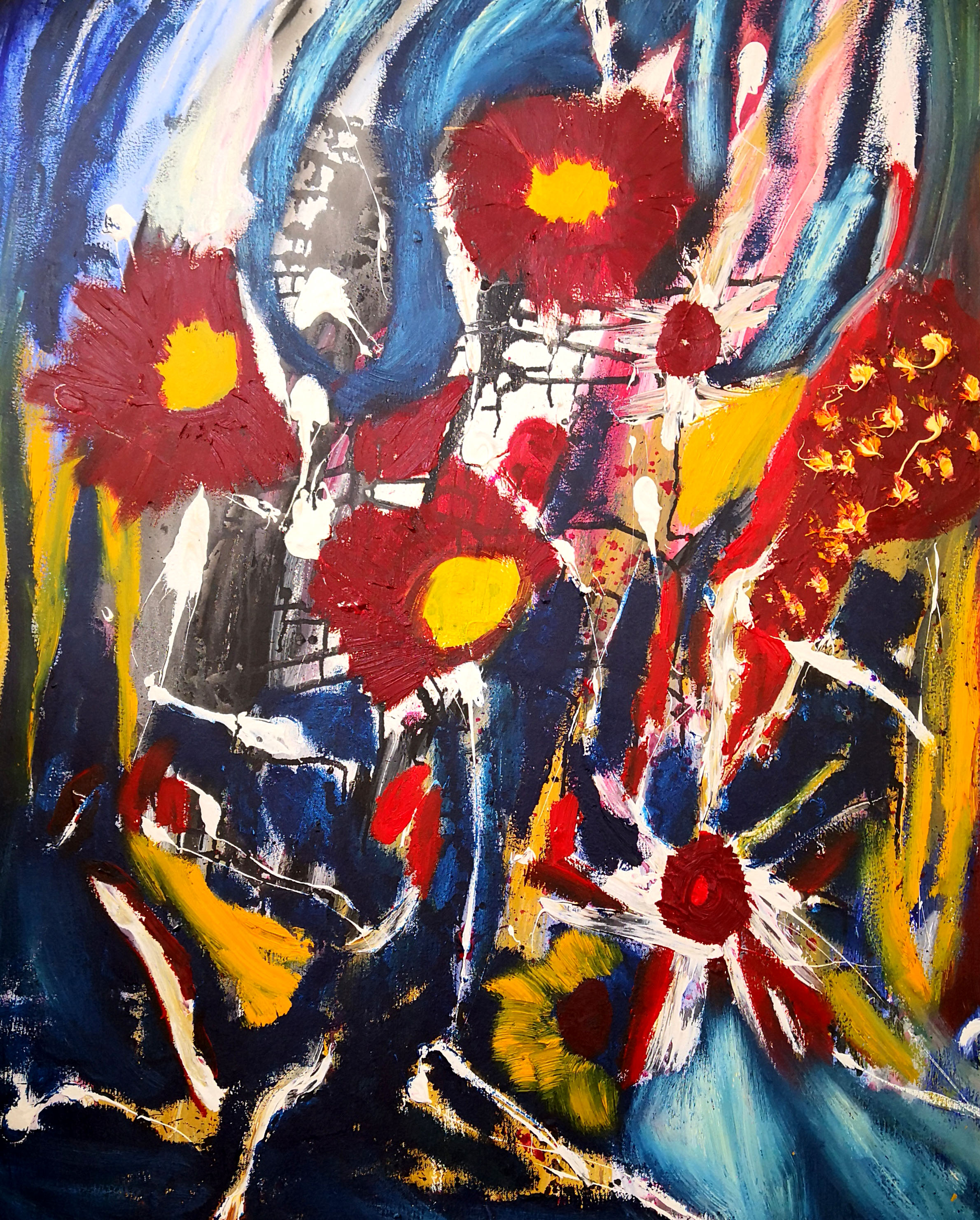 海男的绘画,当然不可能是众多学院派的绘画,她的存在,让我们回顾着她的写作,三十年来的诗学之路的独立美学。当我看海男的画作时,我有一种在云南大地上行走的感觉,而当我眼前产生一种无法言喻的色彩时,我仿佛走进了海男的画室中去,看见了海男的花园和无穷无尽的山水,那些迎着春夏秋冬绽放并互相交叉而伸长枝杆的花枝,是孤独者的吟唱,也是众神的演奏。