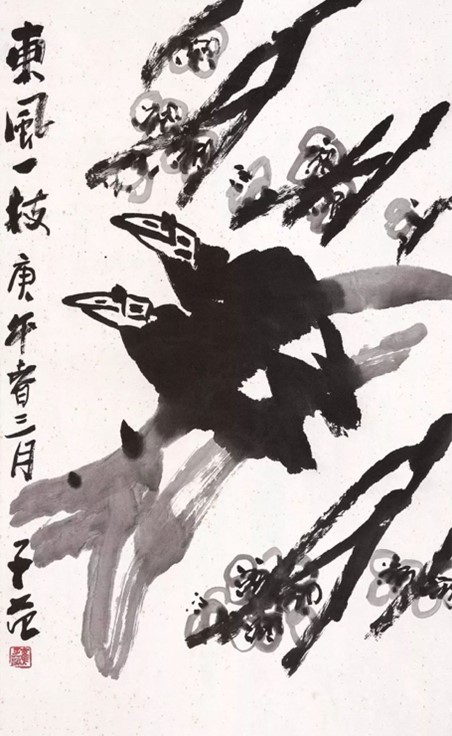 那是一次水墨写意花鸟课,我选择了八哥,因为情有独衷。为了画出不同形态和意境,选了四张画做范本。一张是江南才子唐伯虎画的,那鸟也像他本人一样风流倜傥;一张是八大山人画的,闭着眼蹲在那儿,超越凡尘;第三张是齐白石的,出于山林乡野,却单纯如朝露春水;最后一张出自崔子范之手,我们家的老朋友,一对八歌画得像他自己,憨稚朴拙,天真又自信。英国人都爱鸟,学用中国水墨画鸟,他们乐不可支。