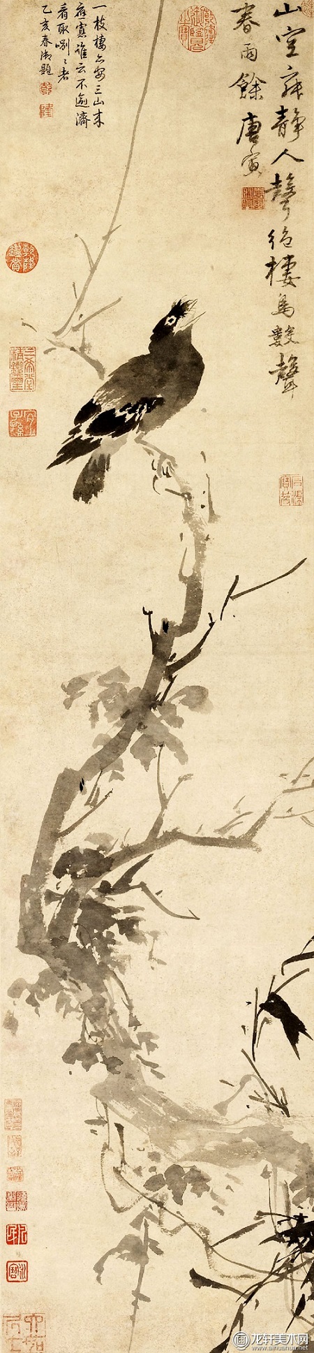 枯槎鸲鹆图轴