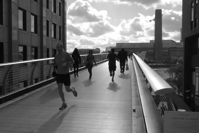 许多人沿着泰晤士河跑步,都是专业人士的行头,跑鞋、短裤。他们像某种新型的动物,跑之前做的一套动作,踢腿,弯腰,甩动手臂,很一致,似乎曾经受训于同一位体育教师。