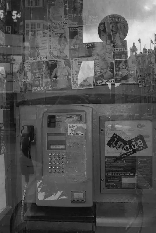 有些电话亭的玻璃上贴满了色情广告,撕去再贴回来,似乎这些电话亭只与色情业联系。