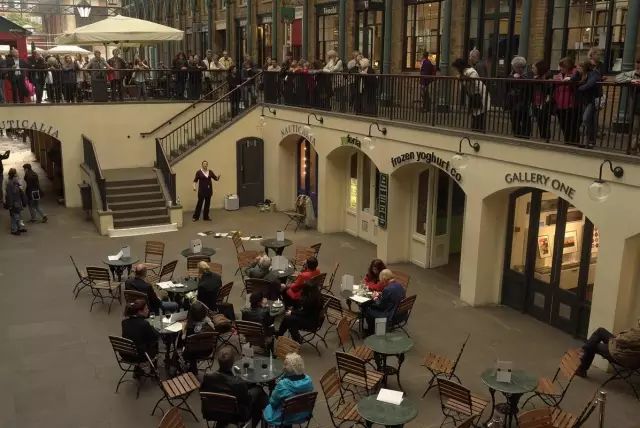 考文特公园里的一个娱乐区。有位女高音在唱歌剧中的某一段,人们坐在她周围,喝着咖啡。她唱了两曲,停下来,喝口矿泉水,一个碟也没有卖出,继续唱。许多在此表演的人,并非为得到施舍,他们只是想表演。